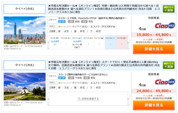 HISの台湾格安ツアー